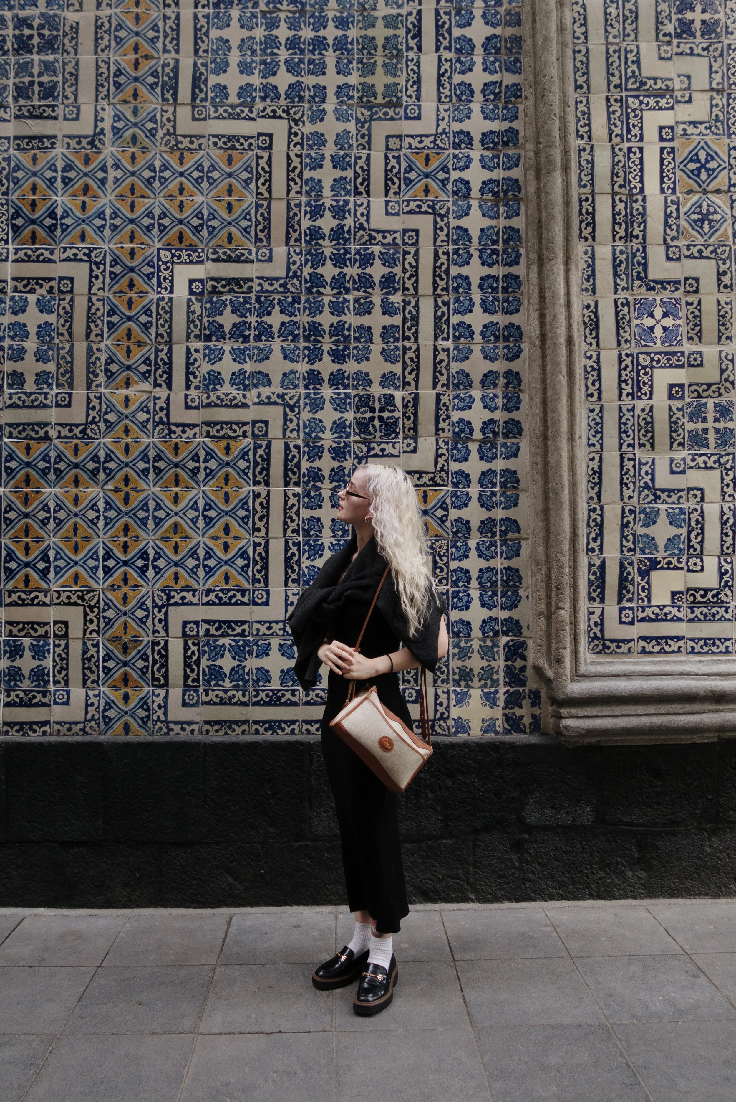 Admiring the incredible tilework near the Casa de los Azulejos